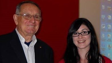 The photo shows one of the prize winners, Sarah Gregory, with judge Bruce Pennay at the 2013 History in July in Sydney.